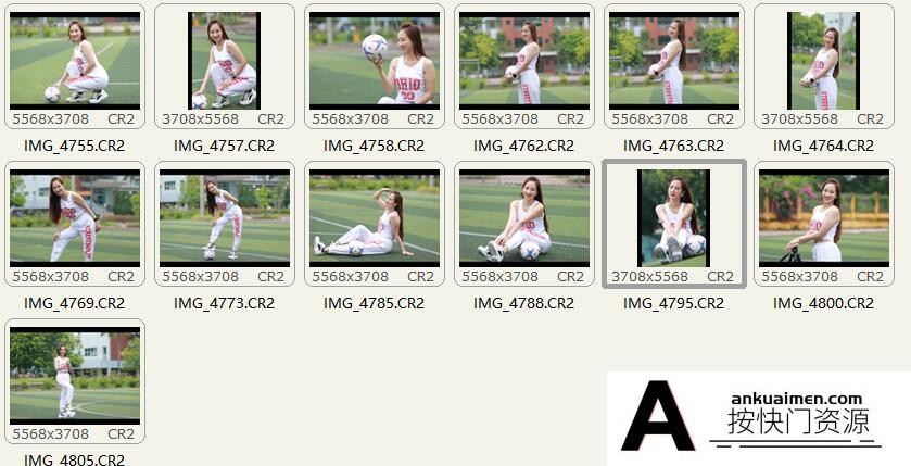 13张足球美女人像摄影RAW原图,人像修图练习RAW素材