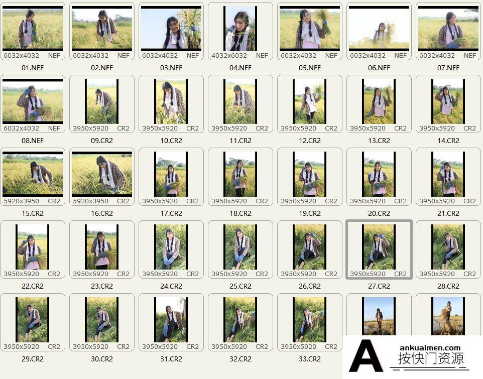 35张秋天稻田人像摄影RAW原图,后期修图练习RAW素材
