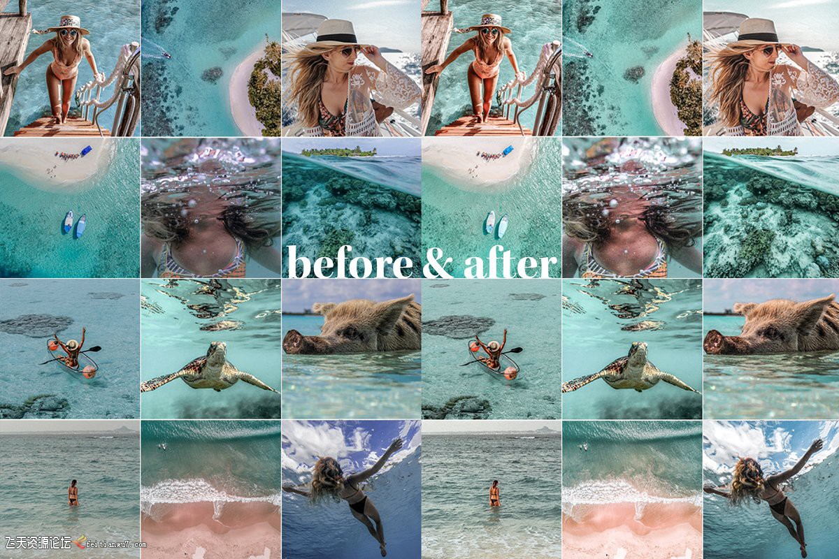 BAHAMAS Lightroom Preset系列拥有3个精心制作的Lightroom预设,灵感来自巴哈马的华丽海洋蓝调。明亮多彩的预设为您的巴哈马,加勒比海和其他热带海滩度假带来神奇的绿松石色调,而温暖而强烈的橙色色调则增添了美丽的光彩。