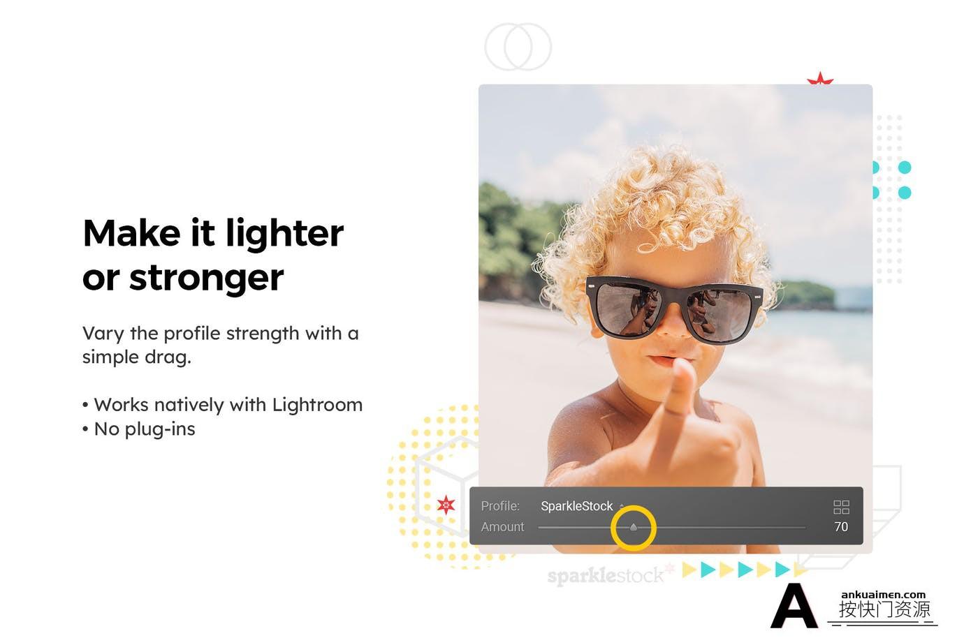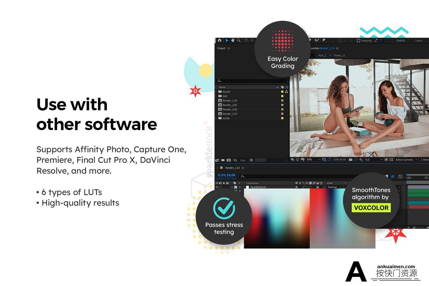 功能 使用 SparkleStock 预设提升您的工作流程,该预设具有 VOXCOLOR 算法,可带来专业效果。