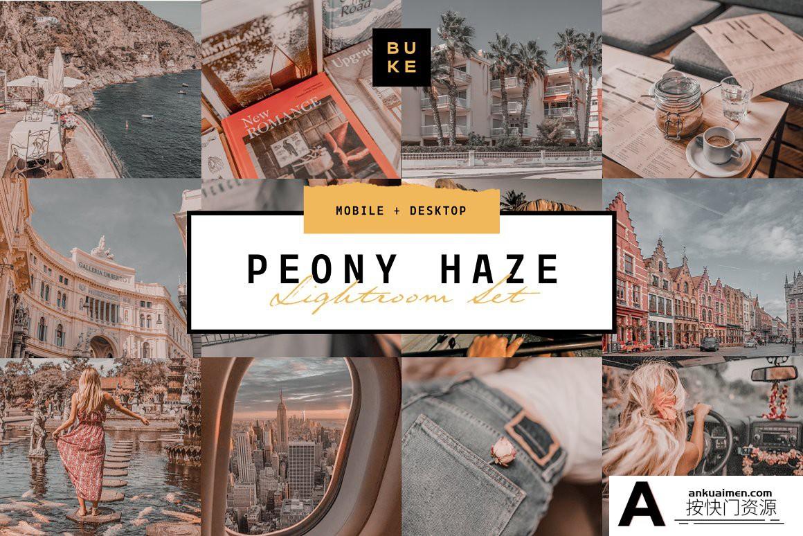适用于台式机和移动设备的冷褪色柔和 Lightroom 预设包“Peony Haze”。一键美化你的照片!