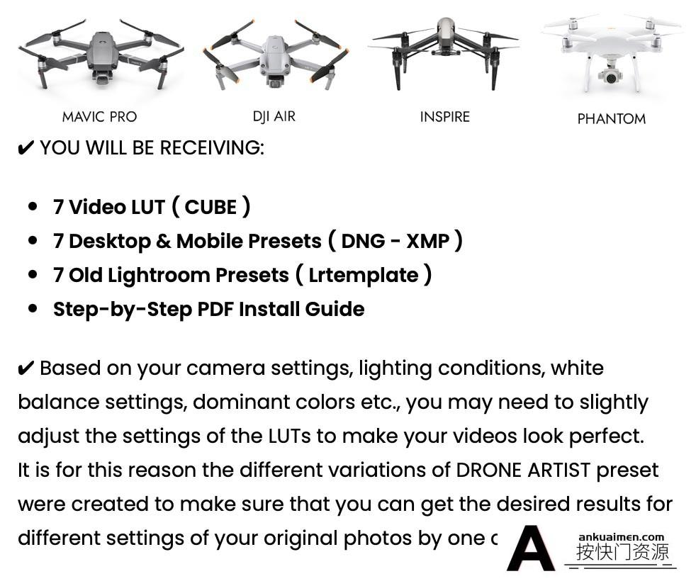 ✔ 这个 Lut 最适合以任何 LOG 格式拍摄的视频,如(S-Log、Slog2、D-Log、F-log …等)✔ 兼容无人机包括(Mavic Pro & Zoom、Mavic Mini、DJI Air、Inspire、Phantom Pro 等)