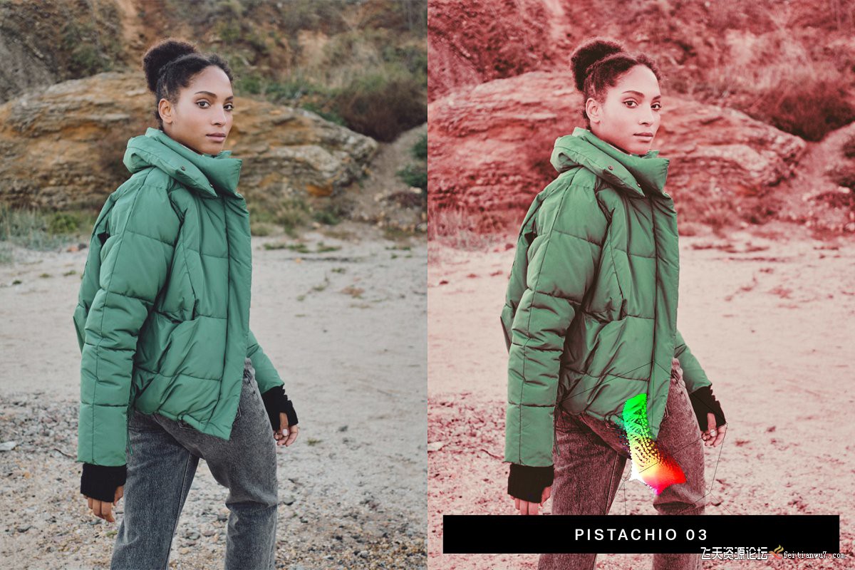 开心果(10个预设)-粉色和绿色带有棕色阴影。