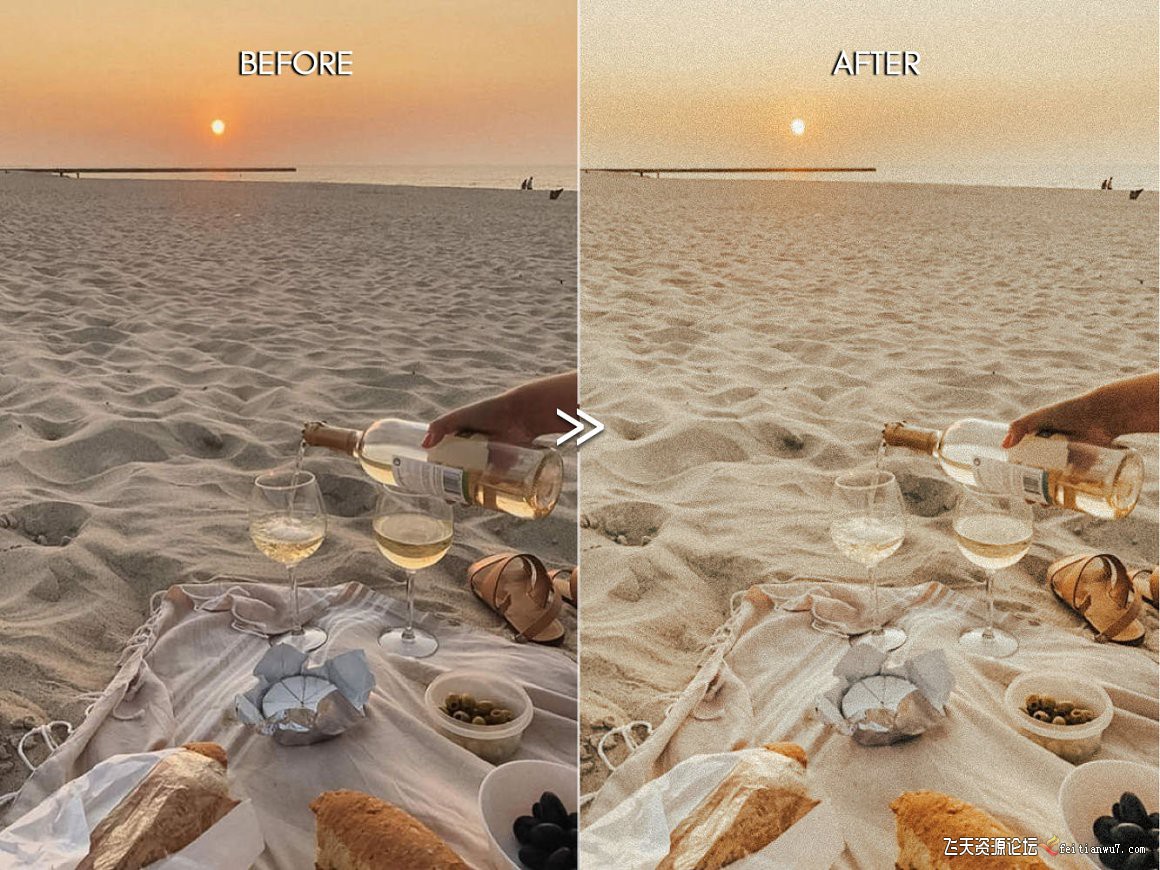 •45个调整预设工具套件(包括20个曝光值,5个锐化预设,4个颗粒度预设,4个饱和度调整,3个饱和度调整,3个自定义白平衡预设,2个渐晕预设,2个降噪预设,1个重置颗粒预设和1个重置全部预设)