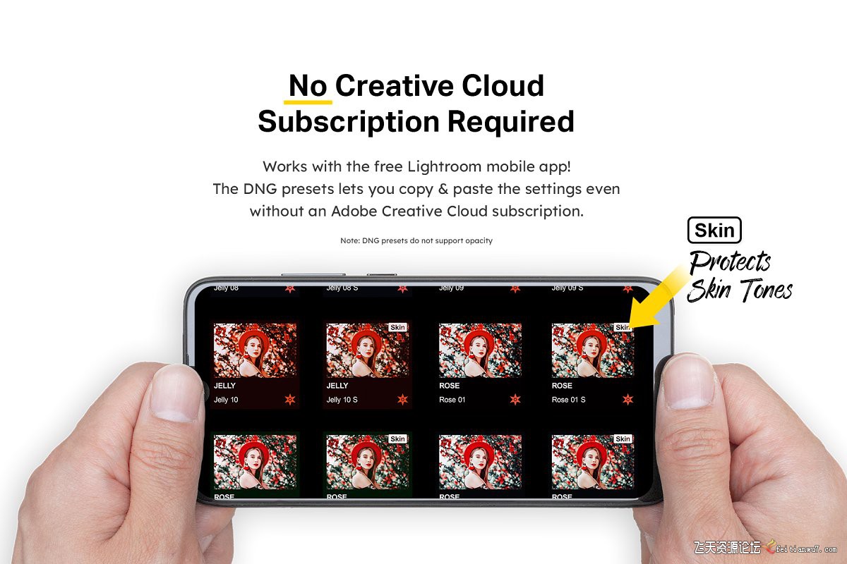 无需Creative Cloud订阅即可使用DNG预设。不支持预设同步和不透明度。